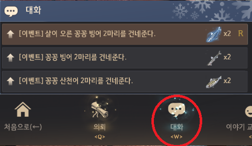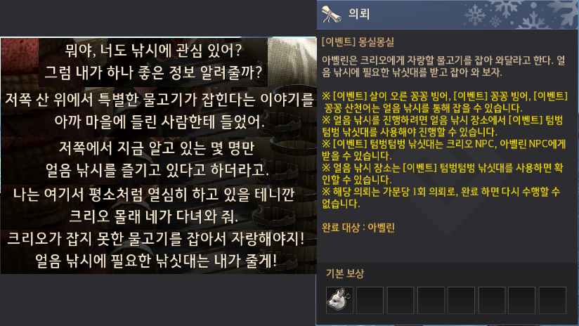*낚시 방법은 보이는것 처럼 마우스를 시계방향 또는 시계 반대방향으로 돌려 빙어를 지치게 해 낚는 방식입니다.