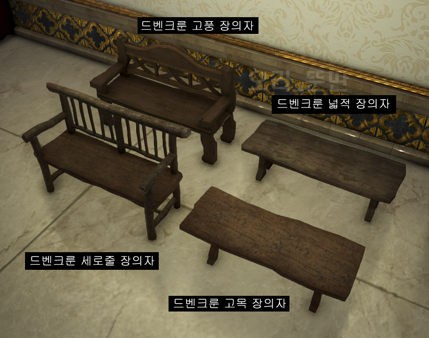 드벤크룬 고풍 장의자 / 드벤크룬 넓적 장의자 / 드벤크룬 세로줄 장의자 / 드벤크룬 고목 장의자