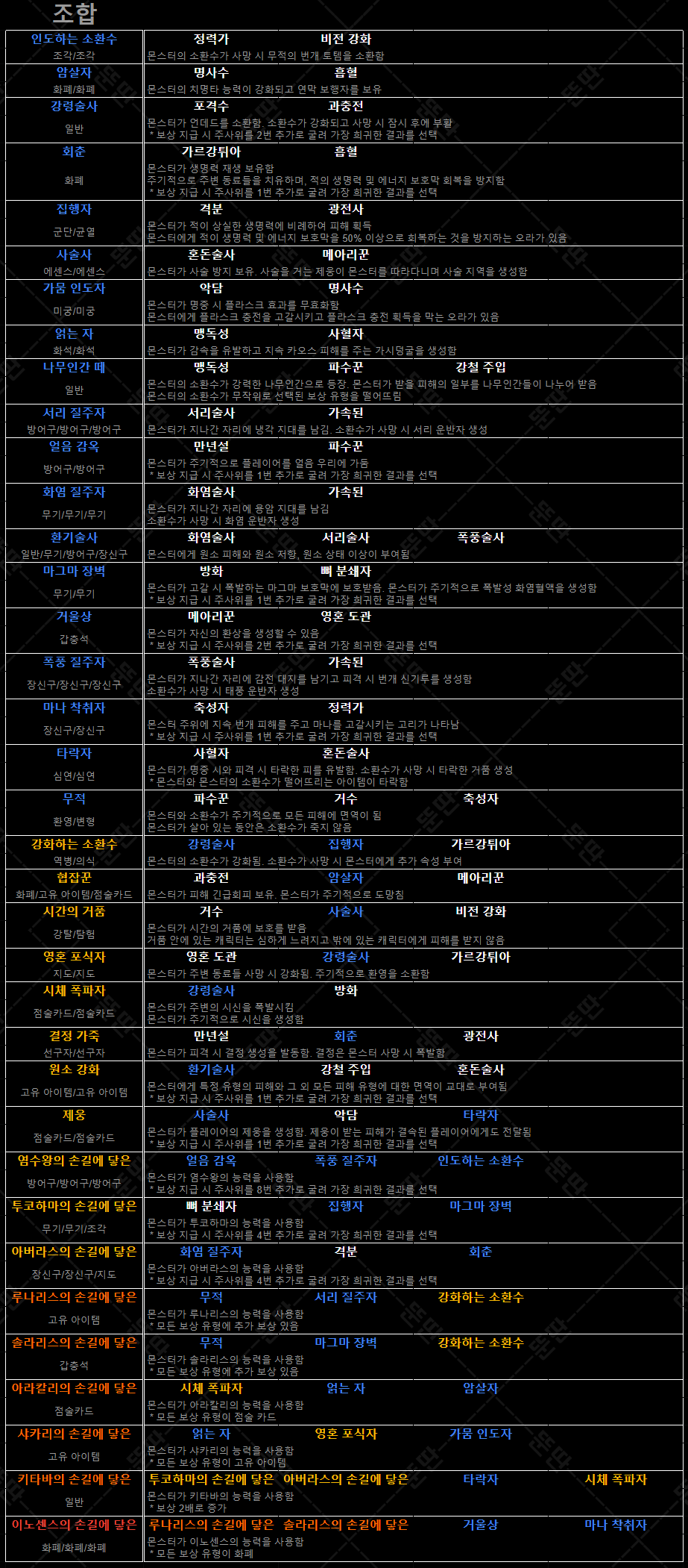 * 아이템의 색은 희귀도가 아닌 조합의 단계를 나타냄.